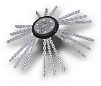 Unser Rotachain Kettenradsatz ist in zwei Varianten erhältlich, mit 12- oder 18-Strang Kettenrad, perfekt abgestimmt auf unterschiedliche Einsatzzwecke und Reifengrößen. Diese besteht aus äußerst robusten Kettensträngen und einzeln austauschbaren Kettenscheiben.